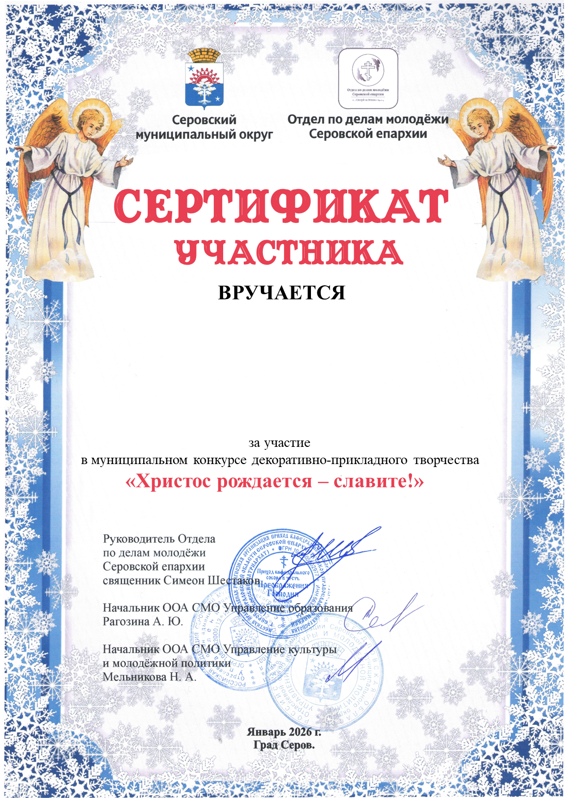 Организаторы конкурса – отраслевой орган администрации Серовского городского округа Управление образования, ООА СГО «Управление культуры и молодежной политики», Муниципальное бюджетное учреждение культуры «Централизованная библиотечная система Серовского городского округа», Серовская епархия.