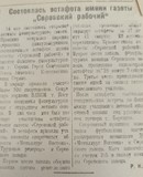 Состоялась эстафета имени газеты «Серовский рабочий». – Текст : непосредственный // Серовский рабочий. – 1944. – 16 мая (№ 88). – С. 2. – Подпись: Р. К.