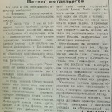 Филатова А. Митинг металлургов / А. Филатова. – Текст : непосредственный // Серовский рабочий. – 1945. – 11 мая (№ 80). – С. 2.