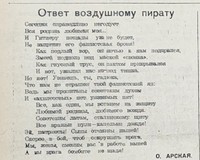 Арская О. Ответ воздушному пирату / О. Арская. – Текст : непосредственный // Серовский рабочий. – 1941. – 3 июля (№ 155). – С. 4.