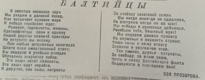 Прозорова З. Балтийцы / Зоя Прозорова. – Текст : непосредственный // Серовский рабочий. – 1942. – 5 ноября (№ 209). – С. 2.