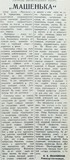 Лозановский О. В. «Машенька» : гастроли Кировградского театра / О. В. Лозановский. – Текст : непосредственный // Серовский рабочий. – 1941. – 23 мая (№ 119). – С. 3.