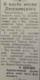 Давыдов И. В клубе имени Дзержинского. – Текст : непосредственный // Серовский рабочий. – 1941. – 20 апреля (№ 93). – С. 4. – (Предпраздничная хроника).