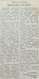 Разумная Е. Хорошее начало / Е. Разумная, А. Ключников. – Текст : непосредственный // Серовский рабочий. – 1941. – 19 января (№ 16). – С. 3. – (Зритель о театре).
