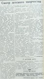 Шаповалов Я. Смотр детского творчества / Я. Шаповалов. – Текст : непосредственный // Серовский рабочий. – 1941. – 18 июня (№ 141). – С. 4.