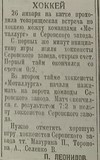 Леонидов П. Хоккей / П. Леонидов. – Текст : непосредственный // Серовский рабочий. – 1941. – 29 января (№ 23). – С. 4.