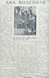 Михайлович П. Два водевиля / П. Михайлович, В. Сурменева ; отв. ред. В. К. Ткачев. – Текст : непосредственный // Серовский рабочий. – 1941. – 19 июня (№ 142). – С. 4.