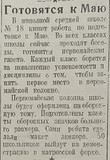 Готовятся к Маю. – Текст : непосредственный // Серовский рабочий. – 1941. – 20 апреля (№ 93). – С. 4. – (Предпраздничная хроника).