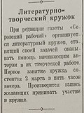 Литературно-творческий кружок. – Текст : непосредственный // Серовский рабочий. – 1941. – 27 февраля (№ 49). – С. 4.
