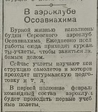 В аэроклубе Осавиахима. – Текст : непосредственный // Серовский рабочий. – 1941. – 11 января (№ 9). – С. 4.