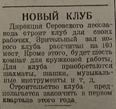 Новый клуб. – Текст : непосредственный // Серовский рабочий. – 1941. – 1 января (№ 1). – С. 4.