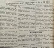 Симфонические концерты оркестра Свердловской Госфилармонии. – Текст : непосредственный // Серовский рабочий. – 1941. – 19 апреля (№ 92). – С. 4.