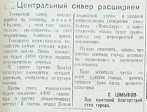 Шмыков С. Центральный сквер расширяем / С. Шмыков. – Текст : непосредственный // Серовский рабочий. – 1941. – 22 мая (№ 118). – С. 3.
