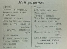 Лестов А. Мой Ровесник / Анатолий Лестов. – Текст : непосредственный // Серовский рабочий. – 1941. – 16 марта (№ 63). – С. 3.