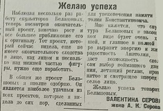 Серова В. Желаю успеха / Валентина Серова. – Текст : непосредственный // Серовский рабочий. – 1941. – 26 января (№ 22). – С. 4.