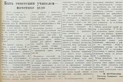 Митрофанов М. Быть советским учителем – почетное дело / М. Митрофанов. – Текст : непосредственный // Серовский рабочий. – 1941. – 7 июня (№ 132). – С. 3.