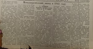 Гагаринов К. Металлургический завод в 1941 году / К. Гагаринов. – Текст : непосредственный // Серовский рабочий. – 1941. – 1 января (№ 1). – С. 2.