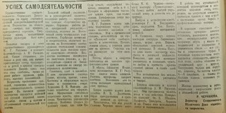 Чернакова Р. Успех самодеятельности / Р. Чернакова. – Текст : непосредственный // Серовский рабочий. – 1941. – 16 марта (№ 63). – С. 2.