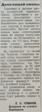 Чумаков Л. Н. Дела нашей смены / Л. Н. Чумаков. – Текст : непосредственный // Серовский рабочий. – 1941. – 27 августа (№ 200). – С. 2.