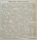 Балабанова Т. Мастера своего дела / Т. Балабанова. – Текст : непосредственный // Серовский рабочий. – 1944. – 26 декабря (№ 170). – С. 2.