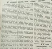 Суслов М. В. С честью выполним клятву вождю / М. В. Суслов. – Текст : непосредственный // Серовский рабочий. – 1942. – 23 декабря (№ 247). – С. 2.