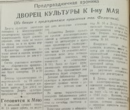 Дворец культуры к 1-му мая : из беседы с председателем правления тов. Федоровым. – Текст : непосредственный // Серовский рабочий. – 1941. – 20 апреля (№ 93). – С. 4. – (Предпраздничная хроника).