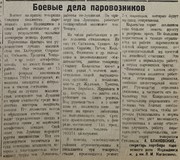 Блиновских А. Боевые дела паровозников / А. Блиновских. – Текст : непосредственный // Серовский рабочий. – 1943. – 5 марта (№ 46). – С. 2.