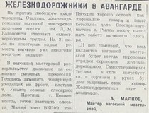 Малков А. Железнодорожники в авангарде / А. Малков. – Текст : непосредственный // Серовский рабочий. – 1941. – 24 июля (№ 173). – С. 4.