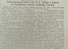 Палатников С. Транспортники завода им. А. К. Серова в борьбе за выполнение клятвы товарищу Сталину / С. Палатников. – Текст : непосредственный // Серовский рабочий. – 1944. – 29 ноября (№ 162). – С. 1.