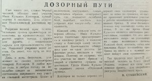 Сташевский В. Дозорный пути / В. Сташевский. – Текст : непосредственный // Серовский рабочий. – 1945. – 10 февраля (№ 26). – С. 1.