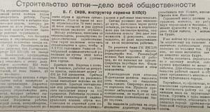 Сиов В. Г. Строительство ветки – дело всей общественности / В. Г. Сиов. – Текст : непосредственный // Серовский рабочий. – 1944. – 3 октября (№ 143). – С. 2.