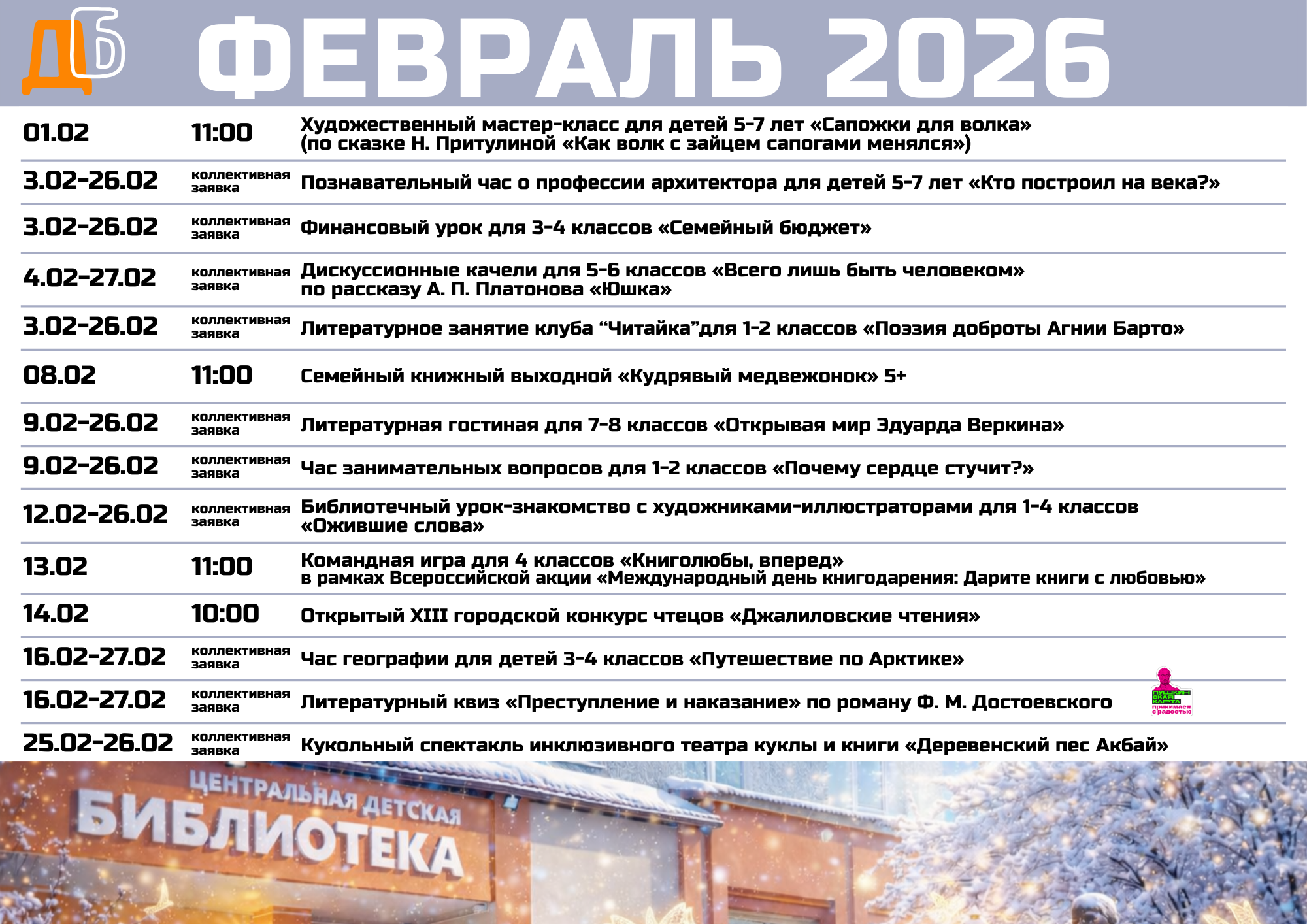 Дата: 15 января. Время: 18:00. Место: Центральная городская детская библиотека.